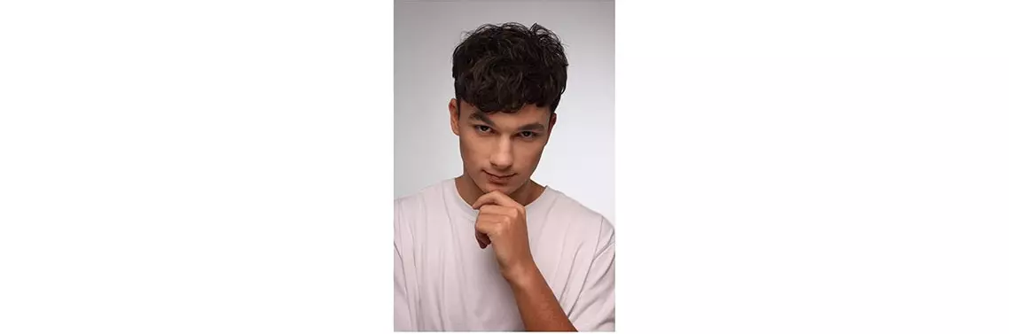 Włosy modela przed strzyżeniem. Lekko faliste, miękkie, posłuszne.